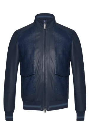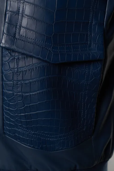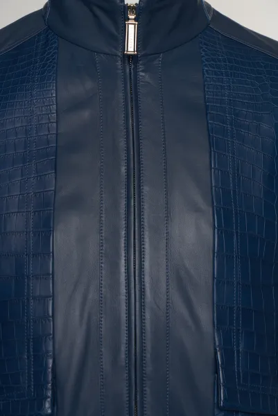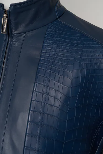 Jacket made of soft calfskin and crocodile leather. Silk lining.
