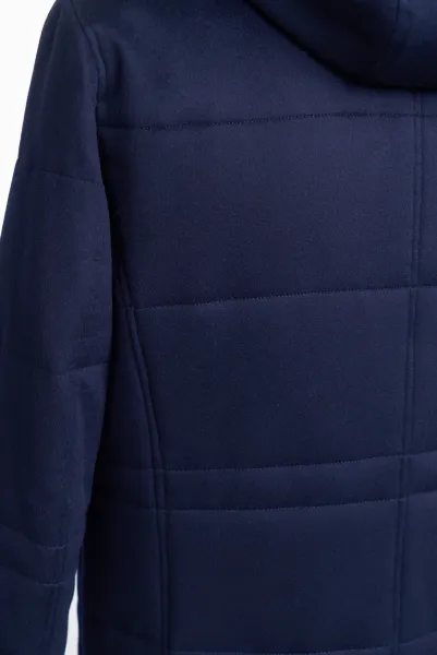 The hood is attached to the product with a zipper.
